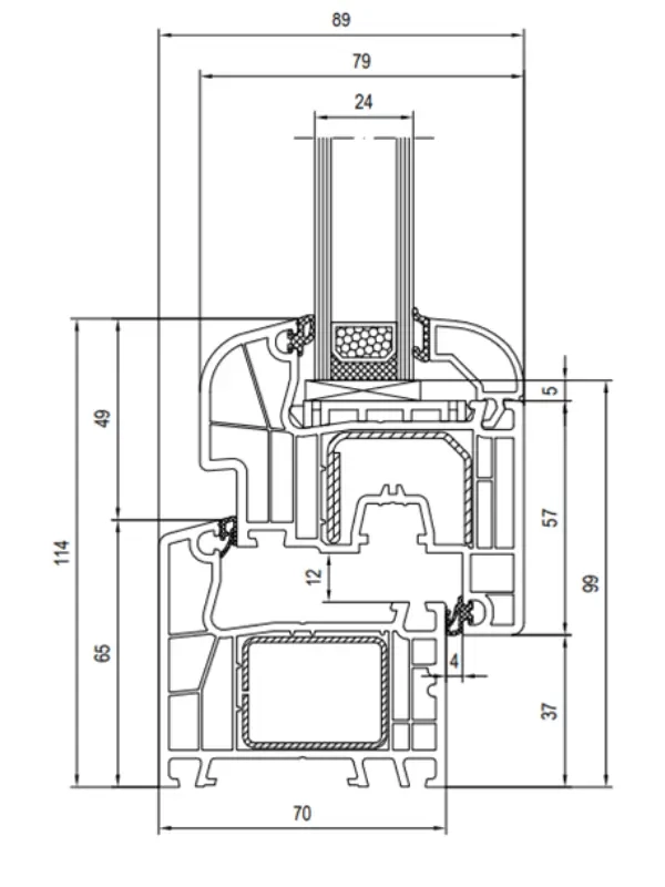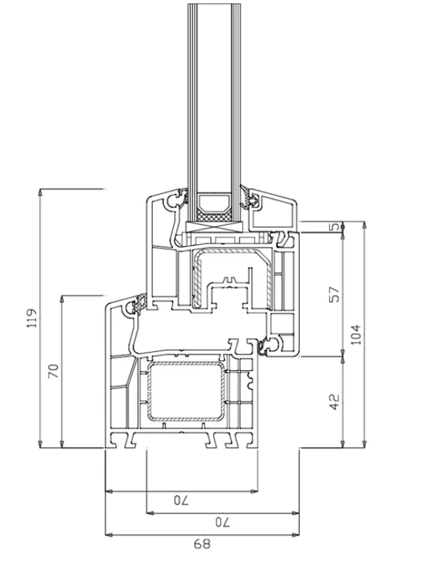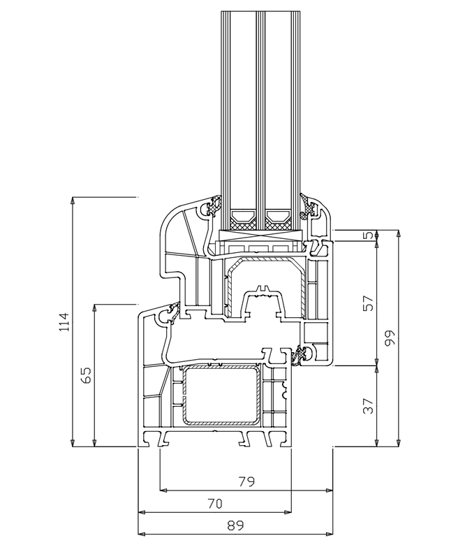 Gli ottimi parametri di isolamento termico e acustico del sistema sono garantiti dalla struttura a 5 camere. La presenza di più camere migliora significativamente i parametri relativi all’isolamento termico e acustico del prodotto finale. In questo sistema di profili la presenza delle 2 guarnizioni fermavetro passa praticamente inosservata e le affidabili guarnizioni in EPDM permettono alle finestre di mantenere la completa funzionalità per molti anni.